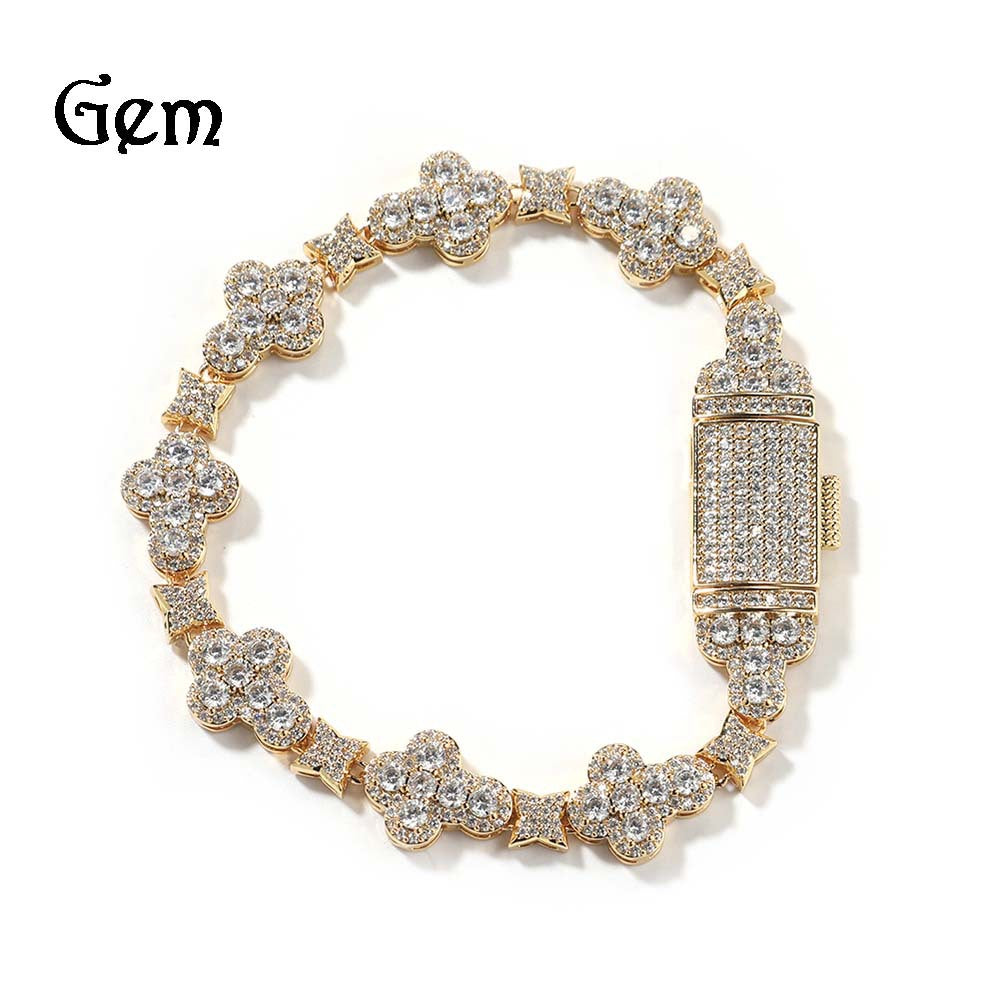 10mm Cross Flower Bracelet with Micro Inlaid Zircon Charm Sparkling Handpiece