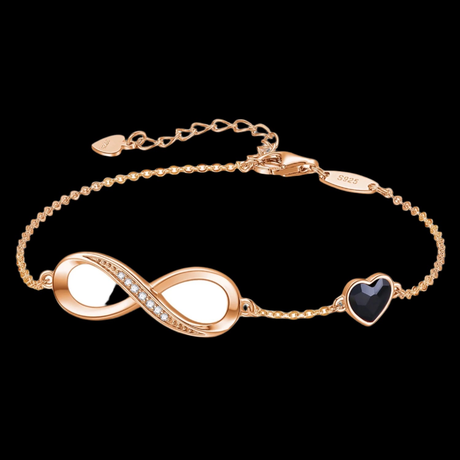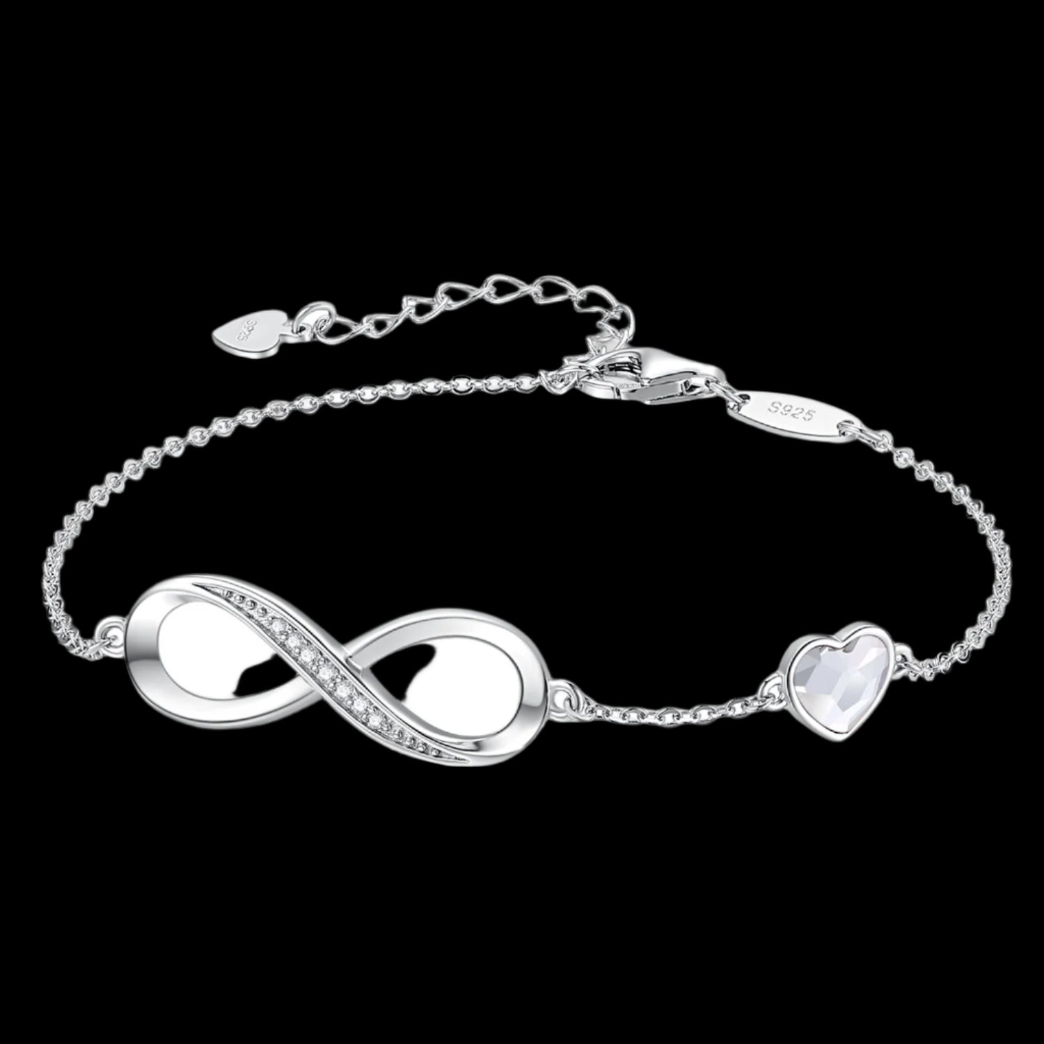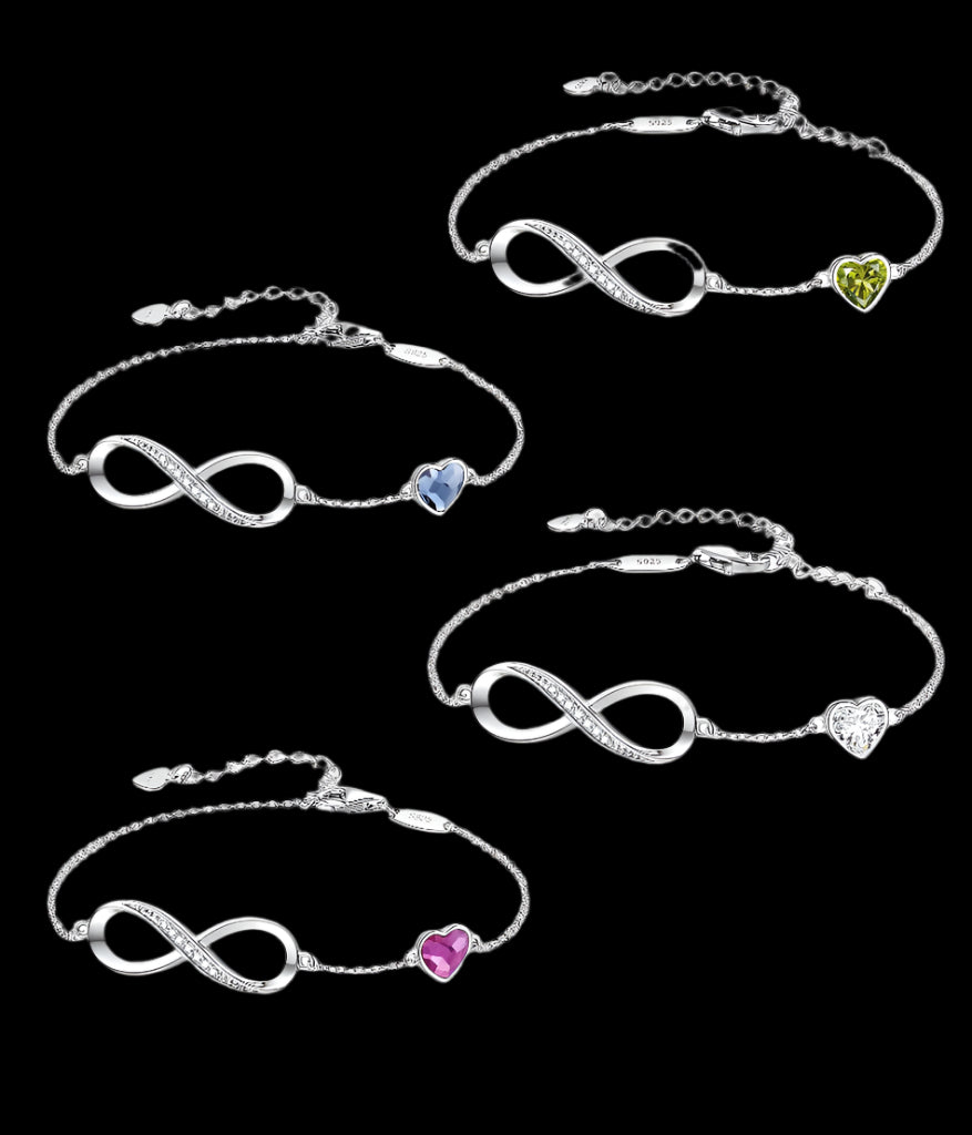 925 Silver Infinity Heart Birthstone Charm Bracelet